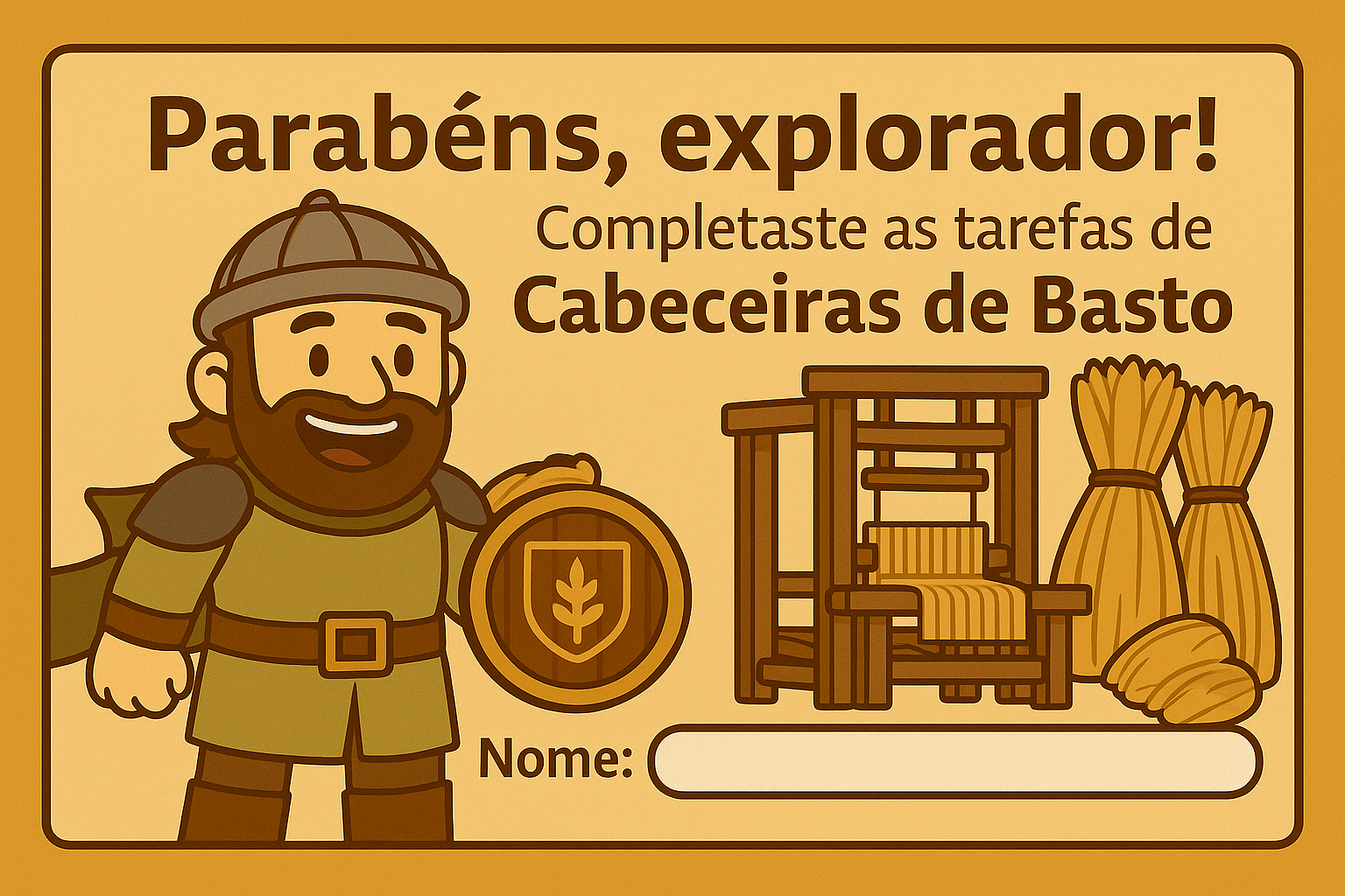Muito bem, Explorador das Terras de Basto! Acompanhaste o Ciclo do Pão: Do Grão ao Pão e da Terra até ao Forno, e provaste que conheces todos os passos para fazer o pão que alimenta o nosso povo!